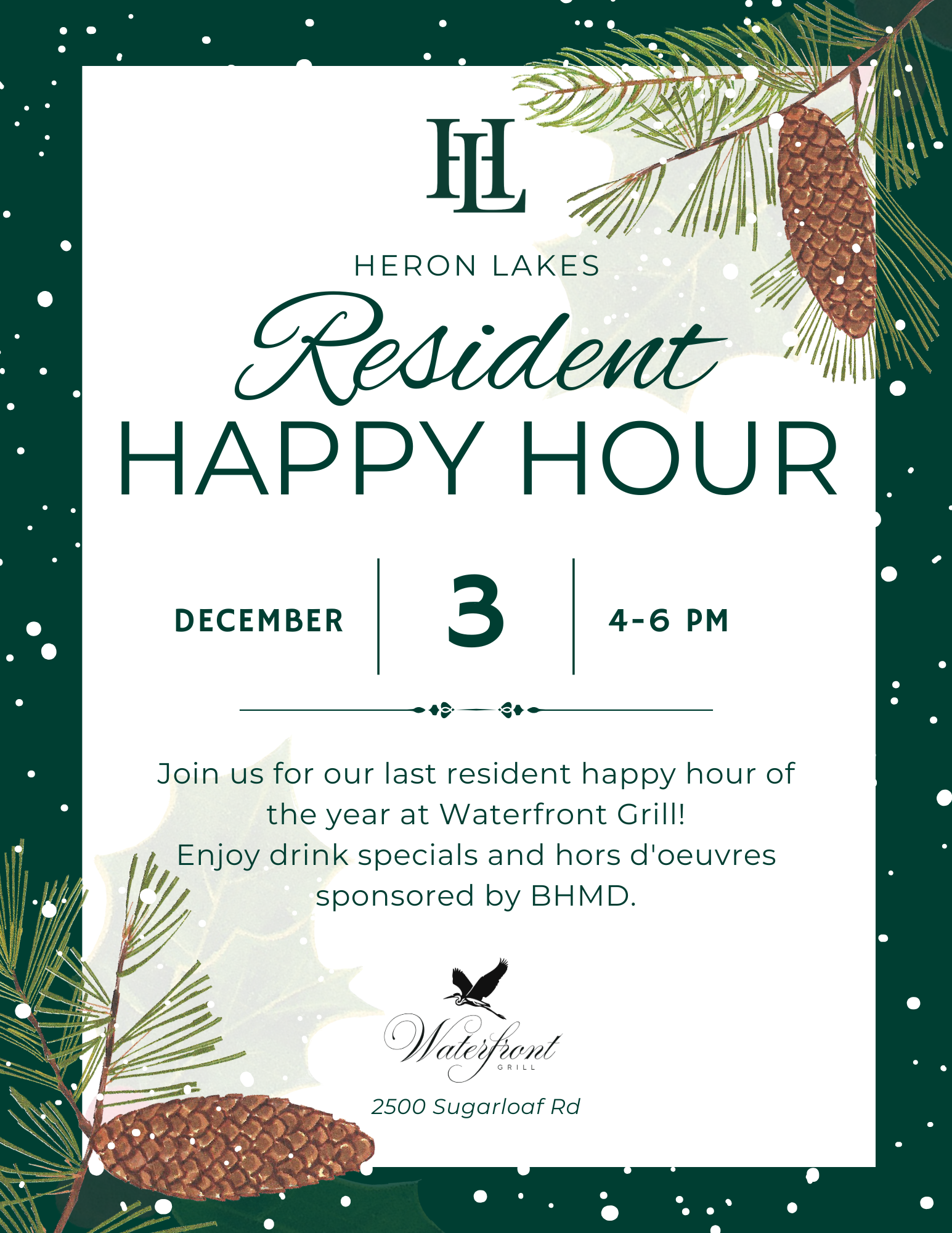 4:00 pm - 6:00 pm Resident Happy Hour Wednesday, December 3rd @ 4:00 pm - 6:00 pm Resident Happy Hour